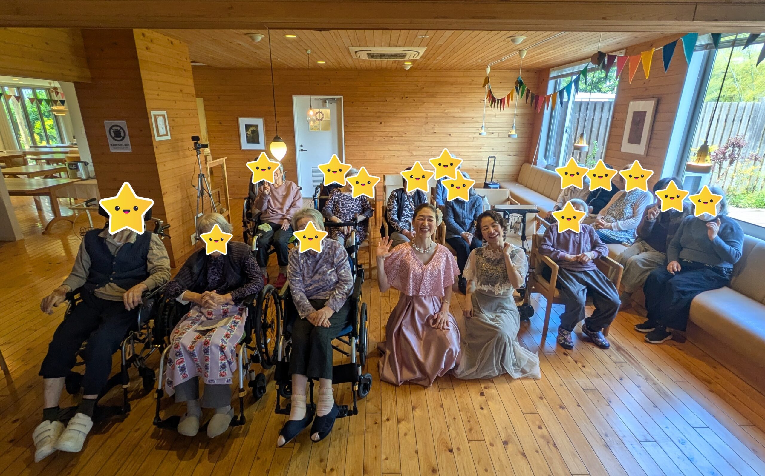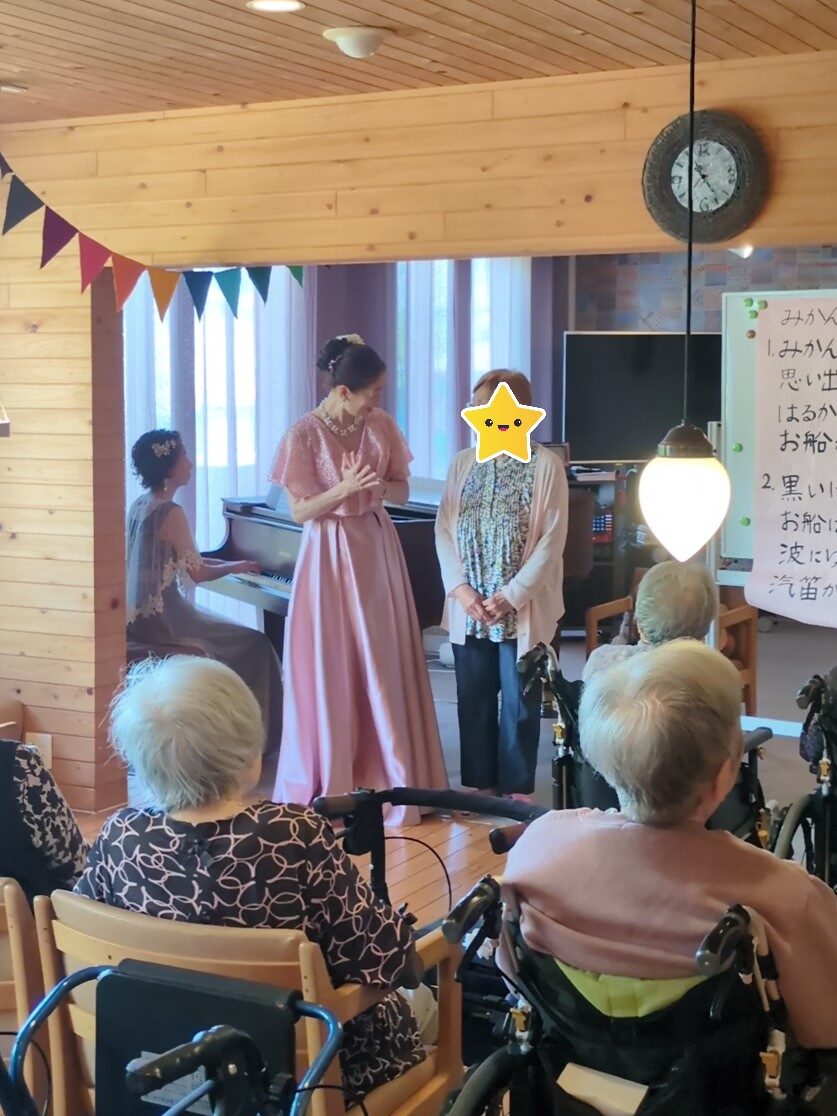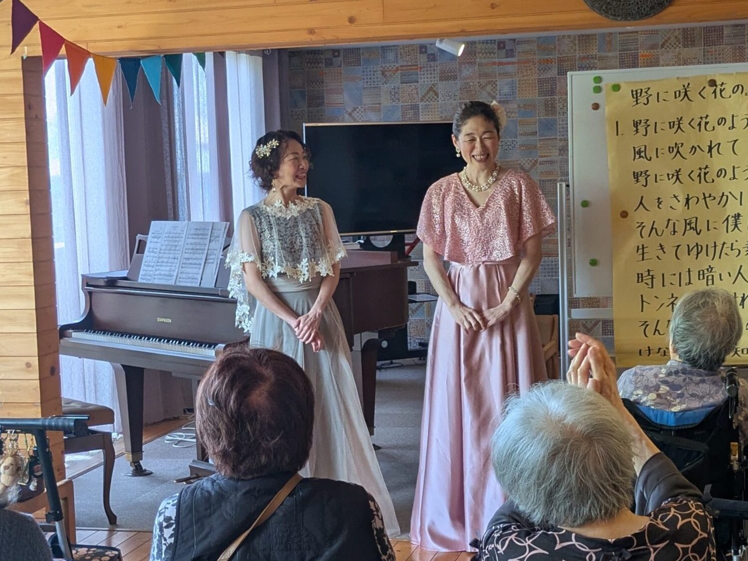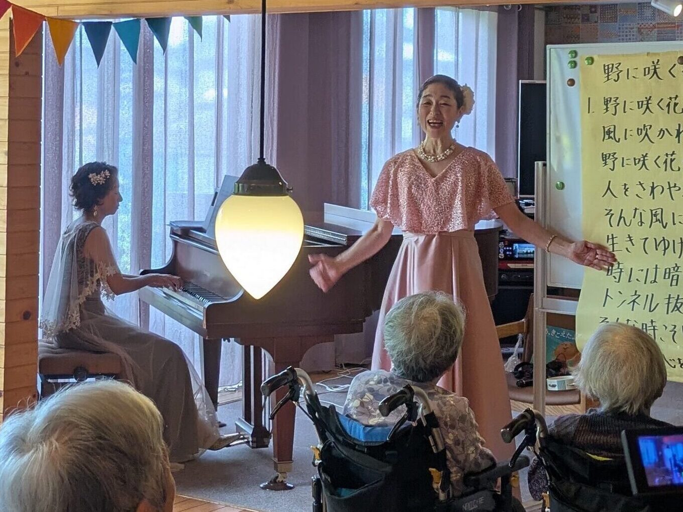 さらに「みかんの花咲く丘」では、利用者様が前に出て一緒に歌ってくださる場面もあり、会場が一体となる印象的なひとときとなりました。